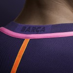 Na koszulkach, które wykonane są w technologii AeroSwift, podobnie jak spodenki mają różowe akcenty. Różowe będą również numery i nazwiska zawodników na plecach, a także getry. Na rękawach i na górze tylnej części koszulki pojawiają się także czarne wstawki. Z tyłu znajdzie się napis Barça oraz senyera.